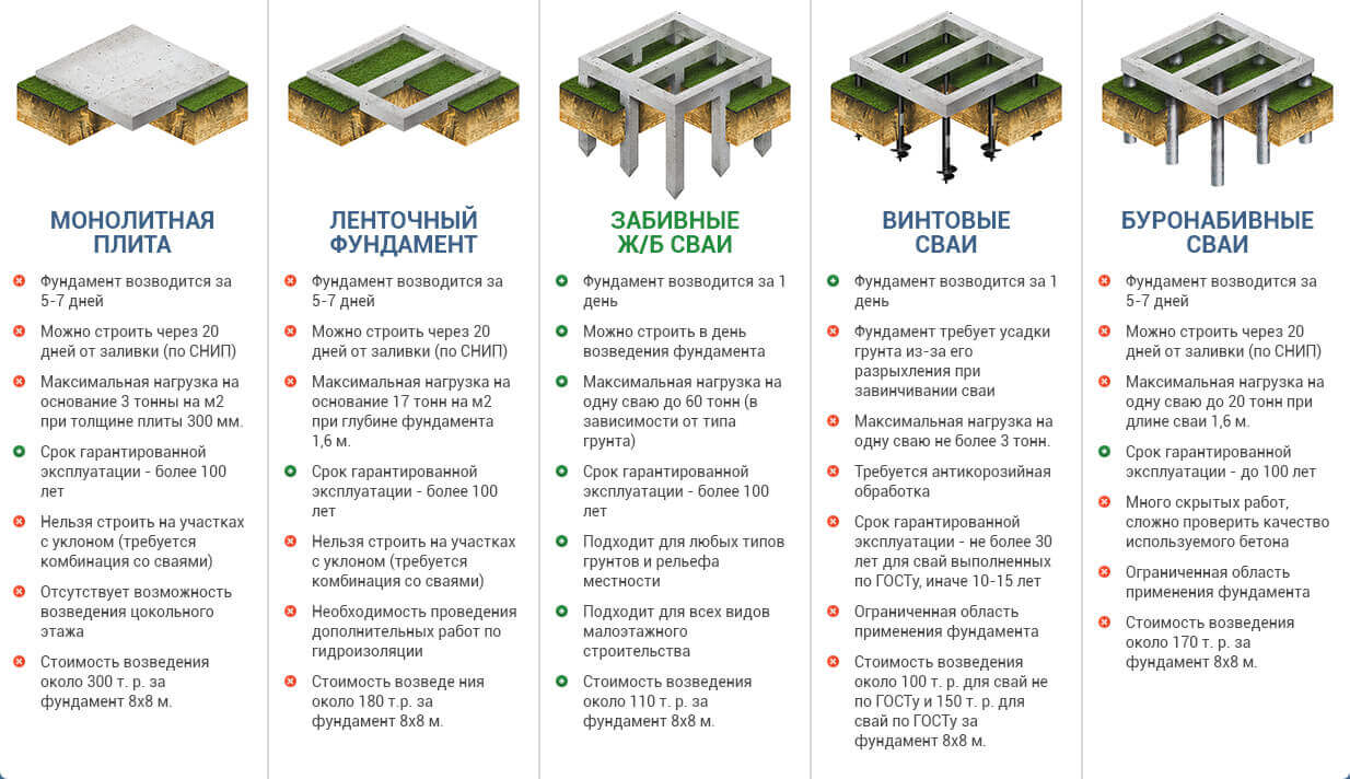 Сравнение фундамента на забивных железобетонных сваях в Константиново